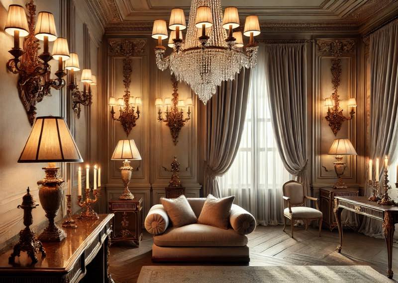 Les bougeoirs classiques en laiton ou en bronze, disposés sur des consoles ou des cheminées, ajoutent un charme intemporel et un éclat chaleureux.